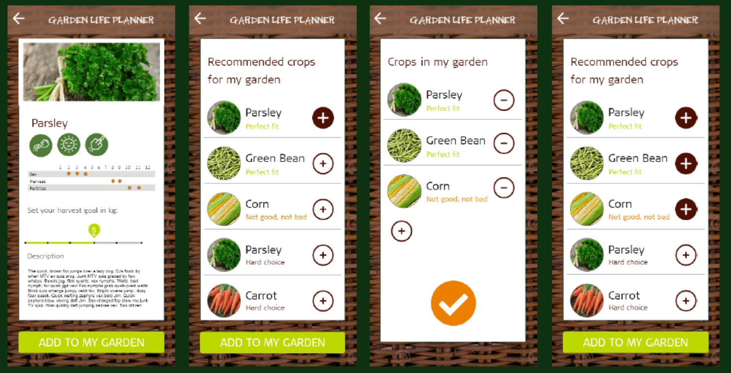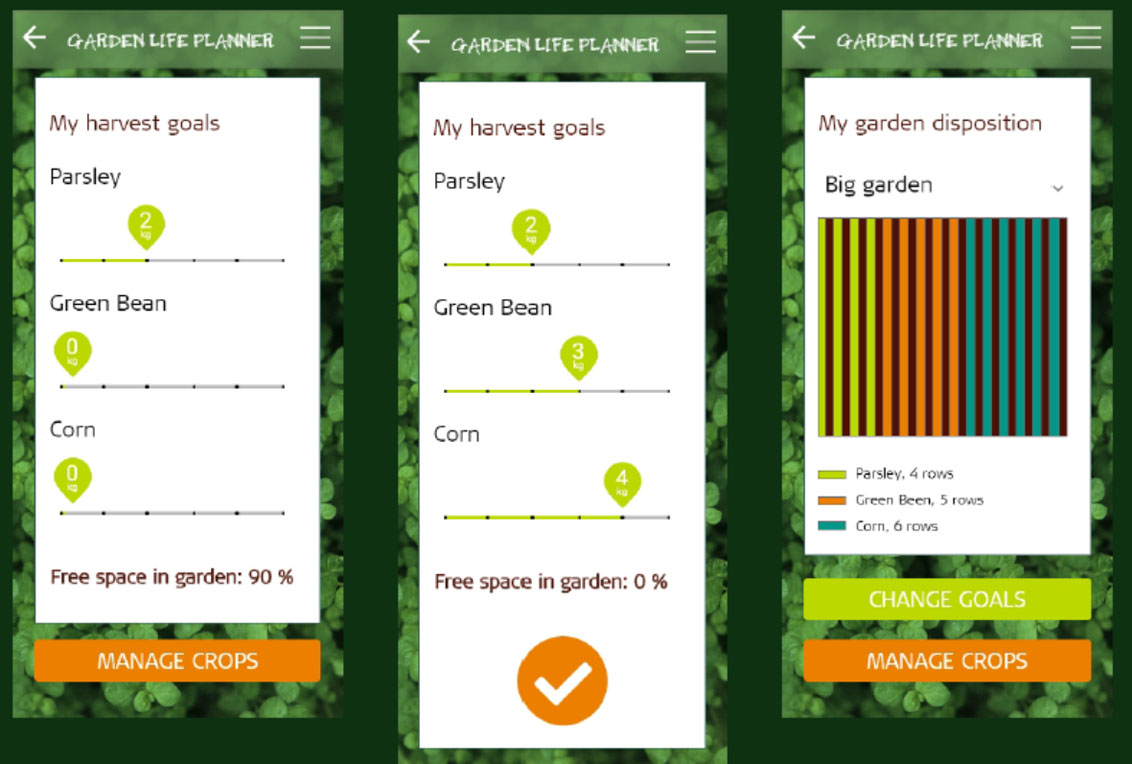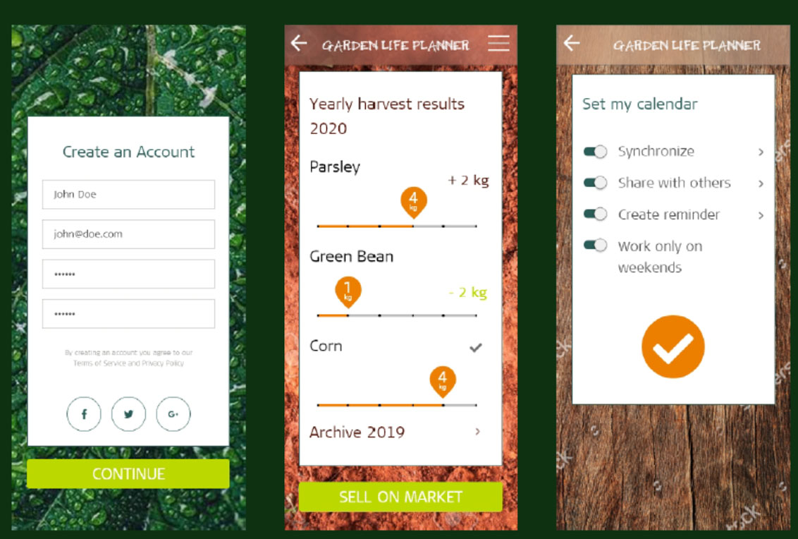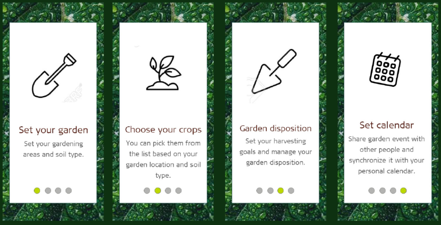 Keeping all the dates regarding your garden in your head is overwhelming. Let our calendar help you store and remind you of all important events. This app manages your gardening calendar: when to plant your vegetables when to fertilize when to harvest. It synchronizes with your personal calendar, you can choose if you wish to work just on weekends. At first, you pick your location and soil type, whether you have a greenhouse or humidity receptor in your garden. The application synchronizes with the weather forecasts. It suggests how to fertilize your chosen soil type. The application can help you to pick the best vegetables for your garden based on soil type and location. You can draw a plan for your garden, the application can help you to combine vegetables next to each other and save this information for next year's use. The application can store your yearly harvest results. Together with weather data can analyze the results and suggest next year's gardening plan. You can sell vegetables you don`t need via your preferred marketplace.