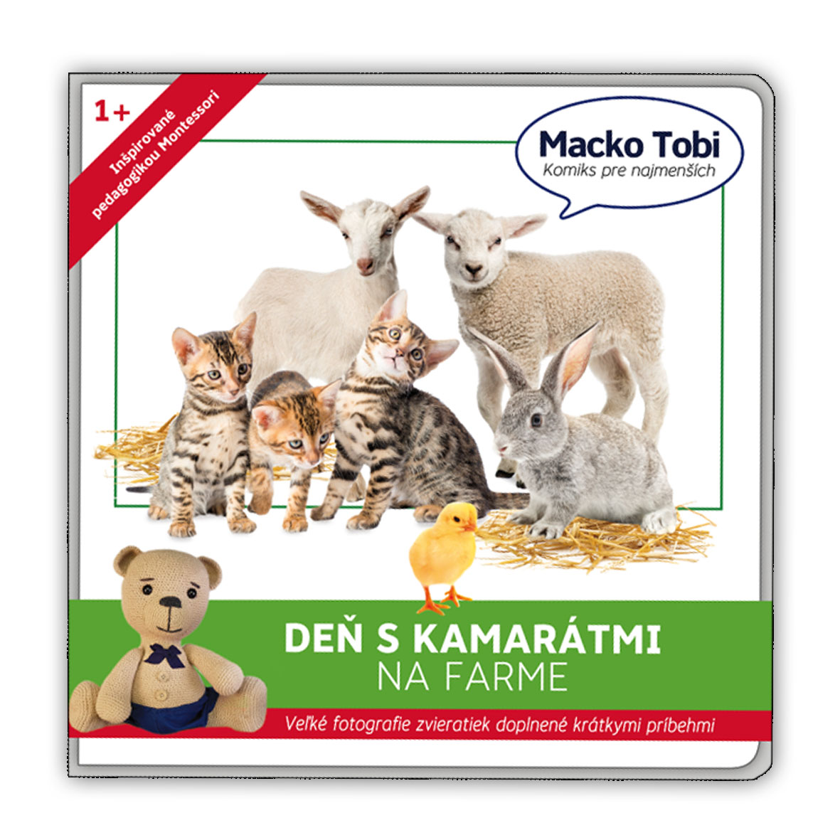 The creation of the book started when I was looking for a specific book for my children. I could not find anything on the market and so I told to myself: "This is interesting, I could try.". So I crocheted the figure of the bear, took some photos, photos of the animals I bought and I make a simple comic. I prepared the book for printing and sent it to the printer. Then I prepared the web page to sell the books (mackotobi.sk). Now I take care of invoicing for small customers or distributing companies.This is the book for small children from 0-3 years. On the left page, you can find a detailed photograph of a farm animal and on the opposite site you can find a very simple comix of the animal. The book is made on the principles of Maria Montessori's method.
