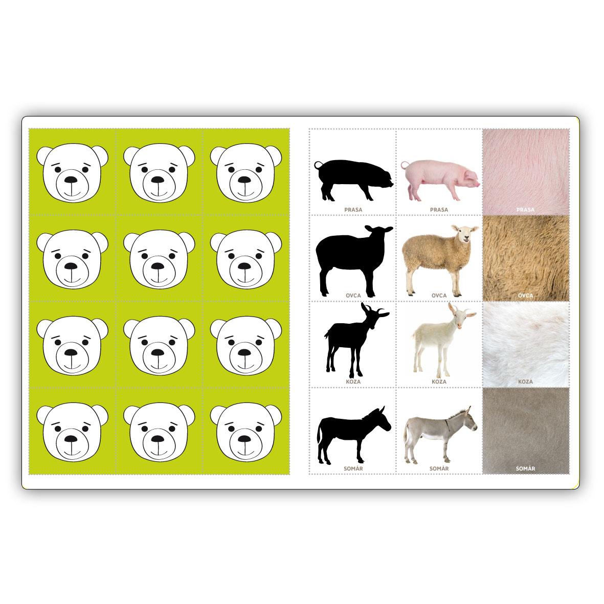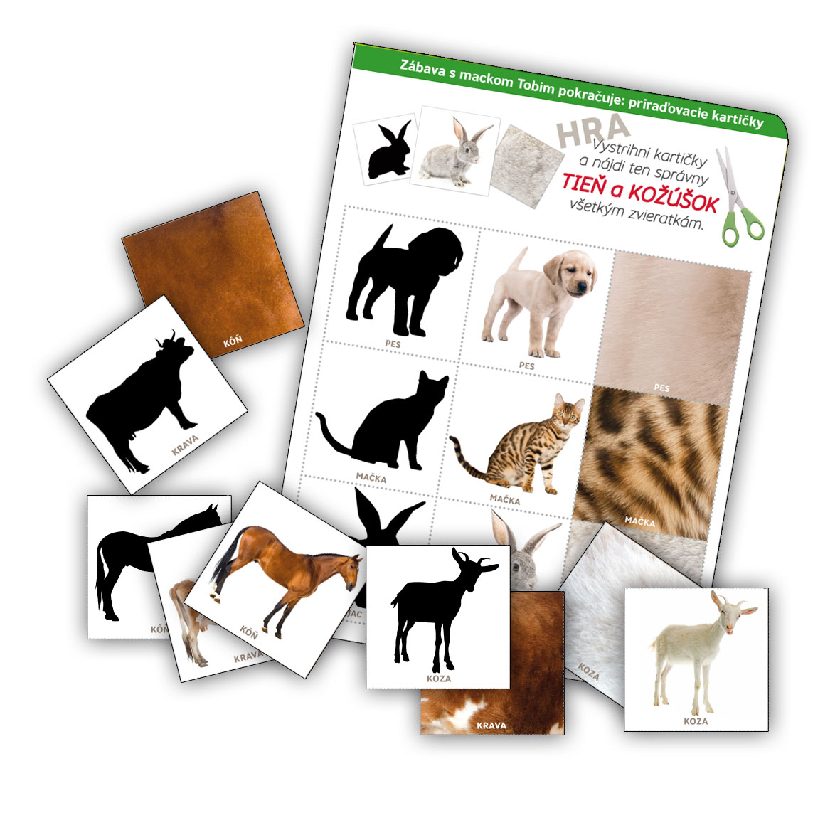 You can cut your own game, find pairs - animal, its fur and its silhouette.