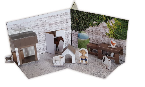 Scissors, glue, skill and patience. Play with the characters from the book.